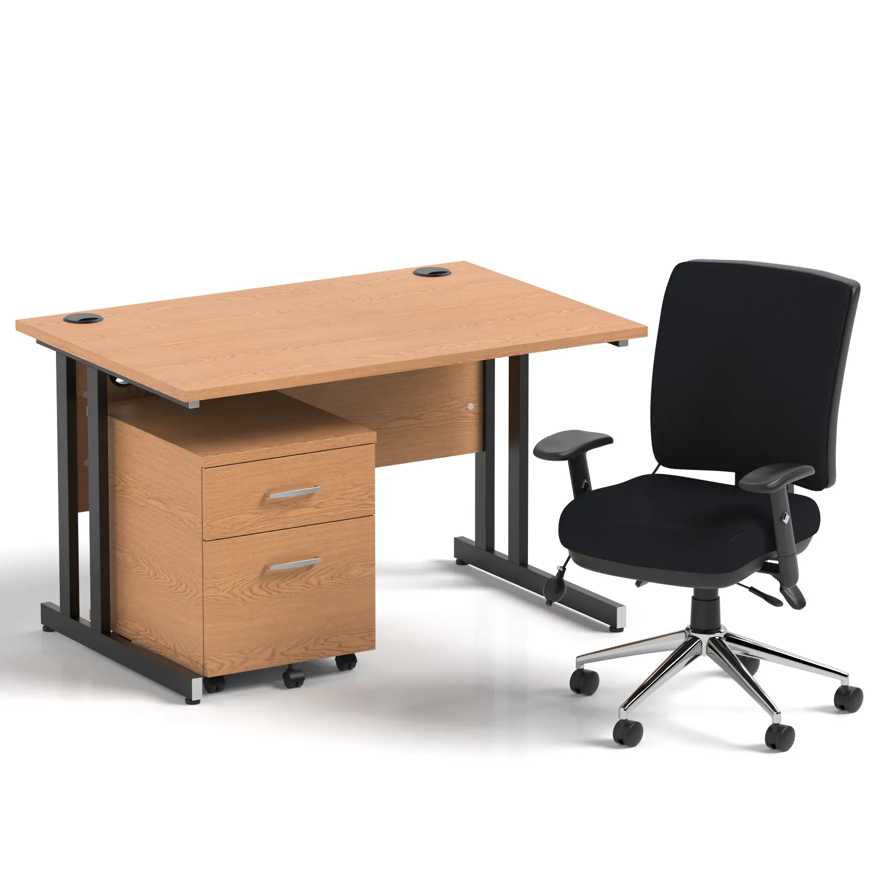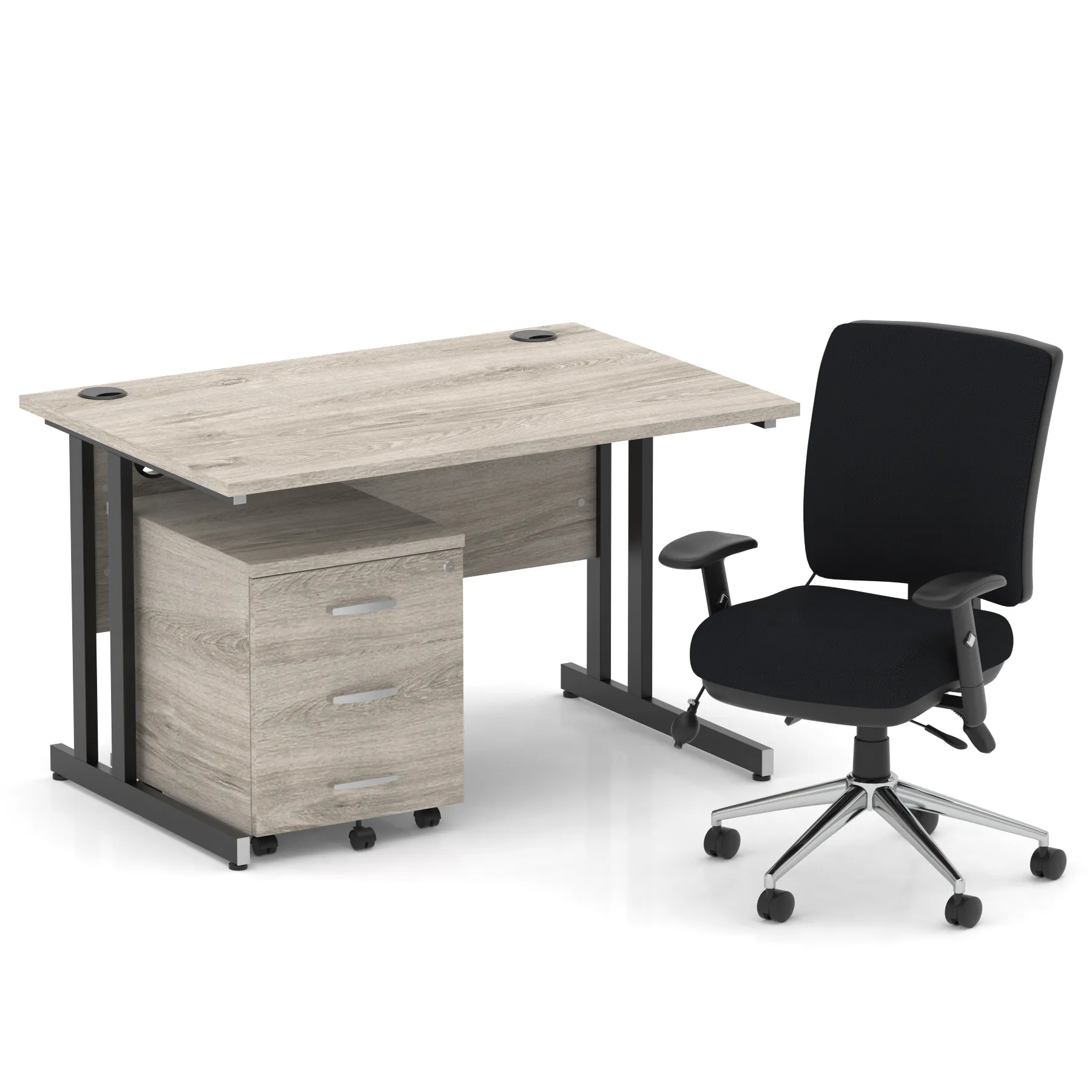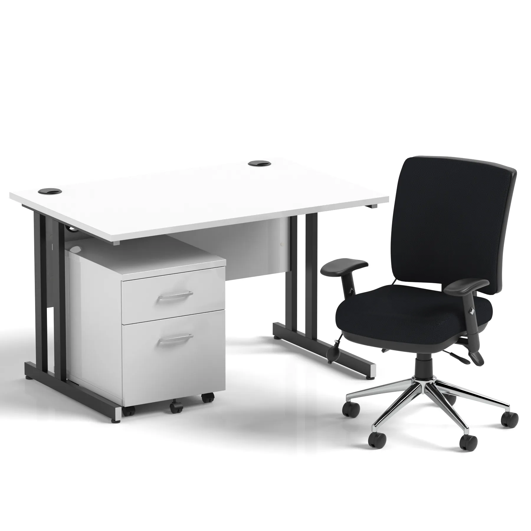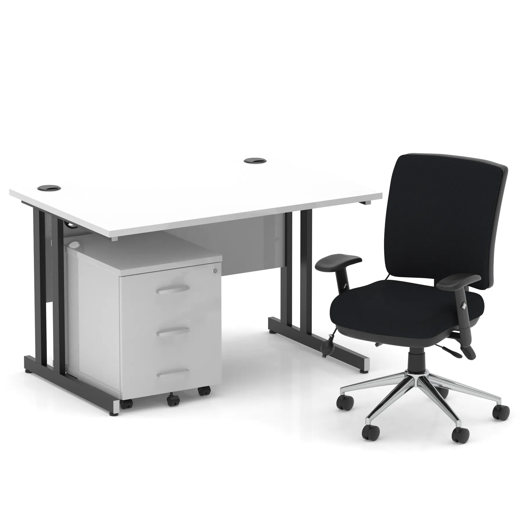 Impulse 1200mm Cantilever Straight Desk With Mobile Pedestal and Chiro Medium Back Black Operator Chair