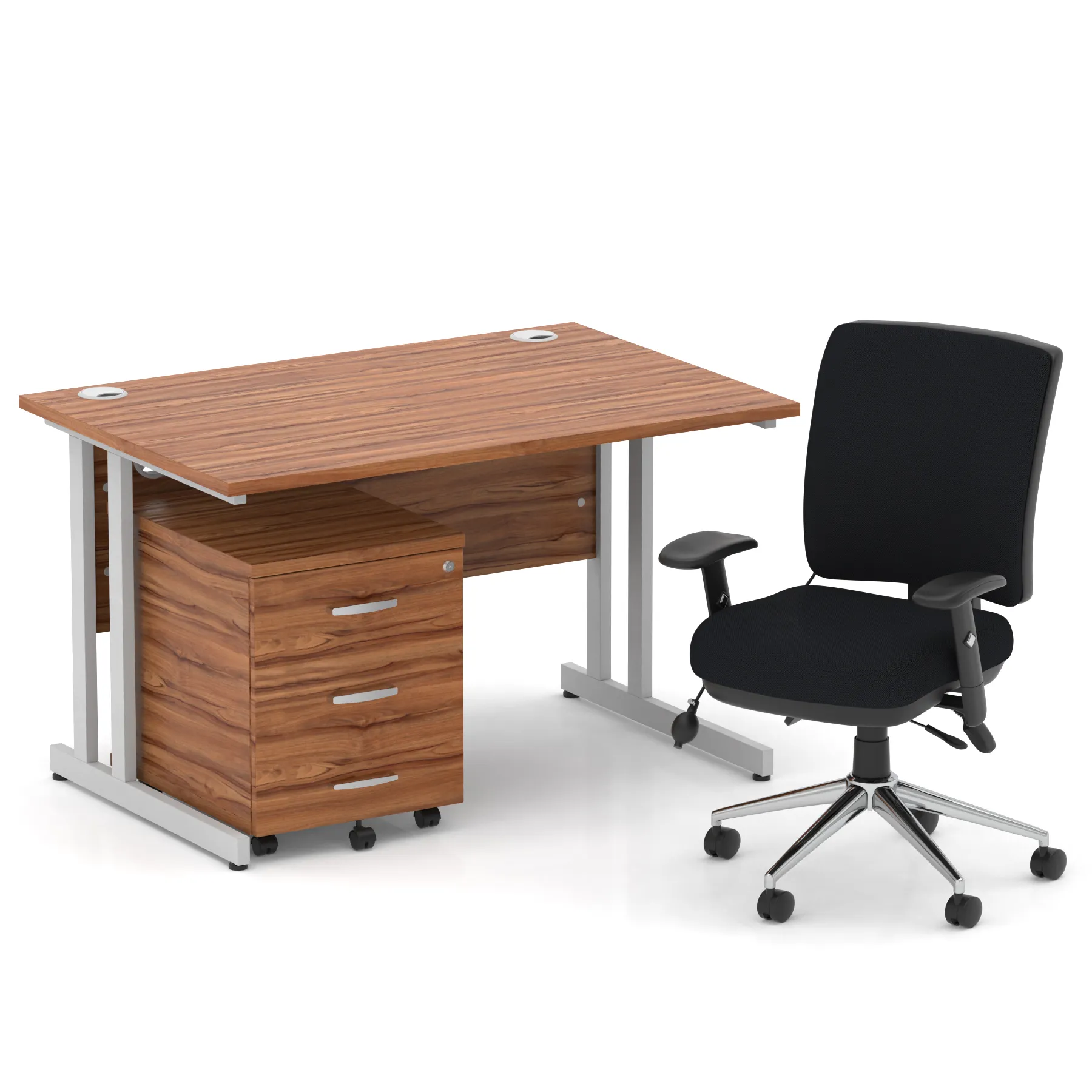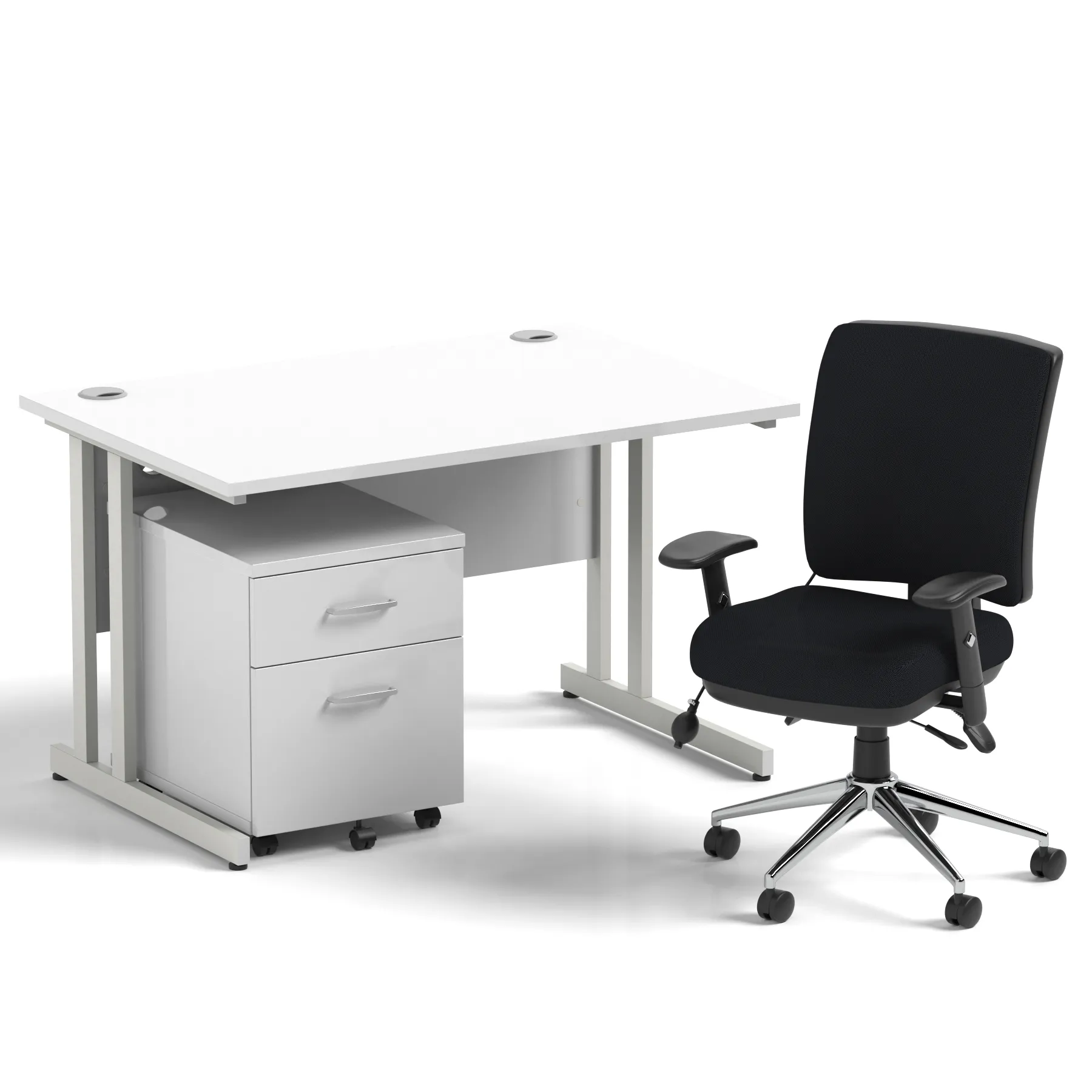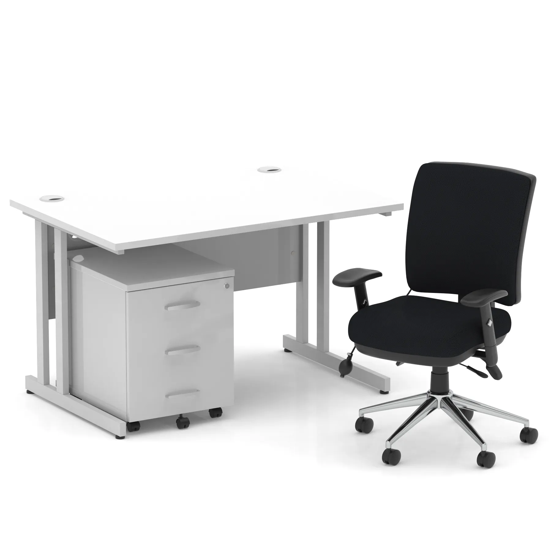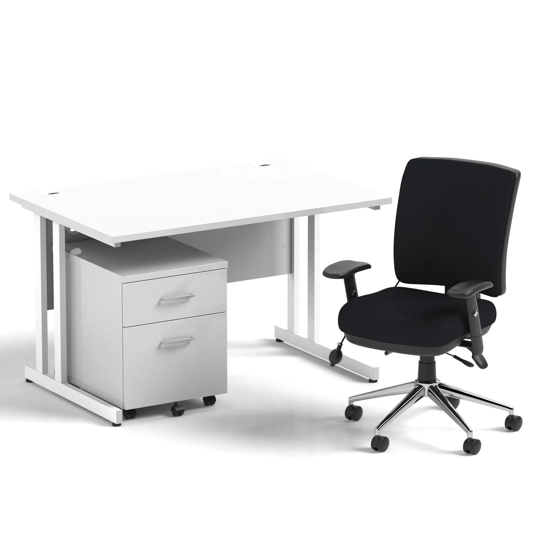 Impulse 1200mm Cantilever Straight Desk With Mobile Pedestal and Chiro Medium Back Black Operator Chair