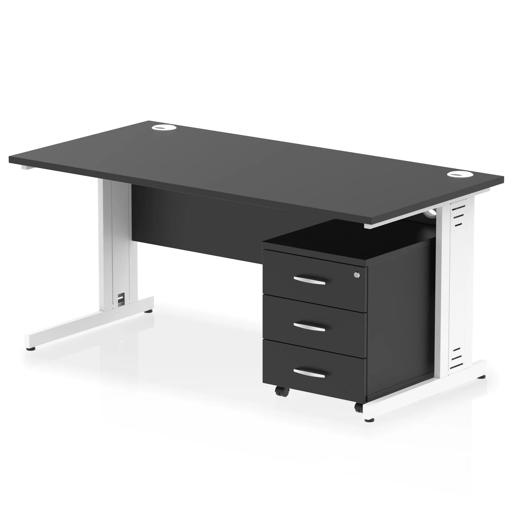Impulse 1600mm Cable Managed Straight Desk With Mobile Pedestal