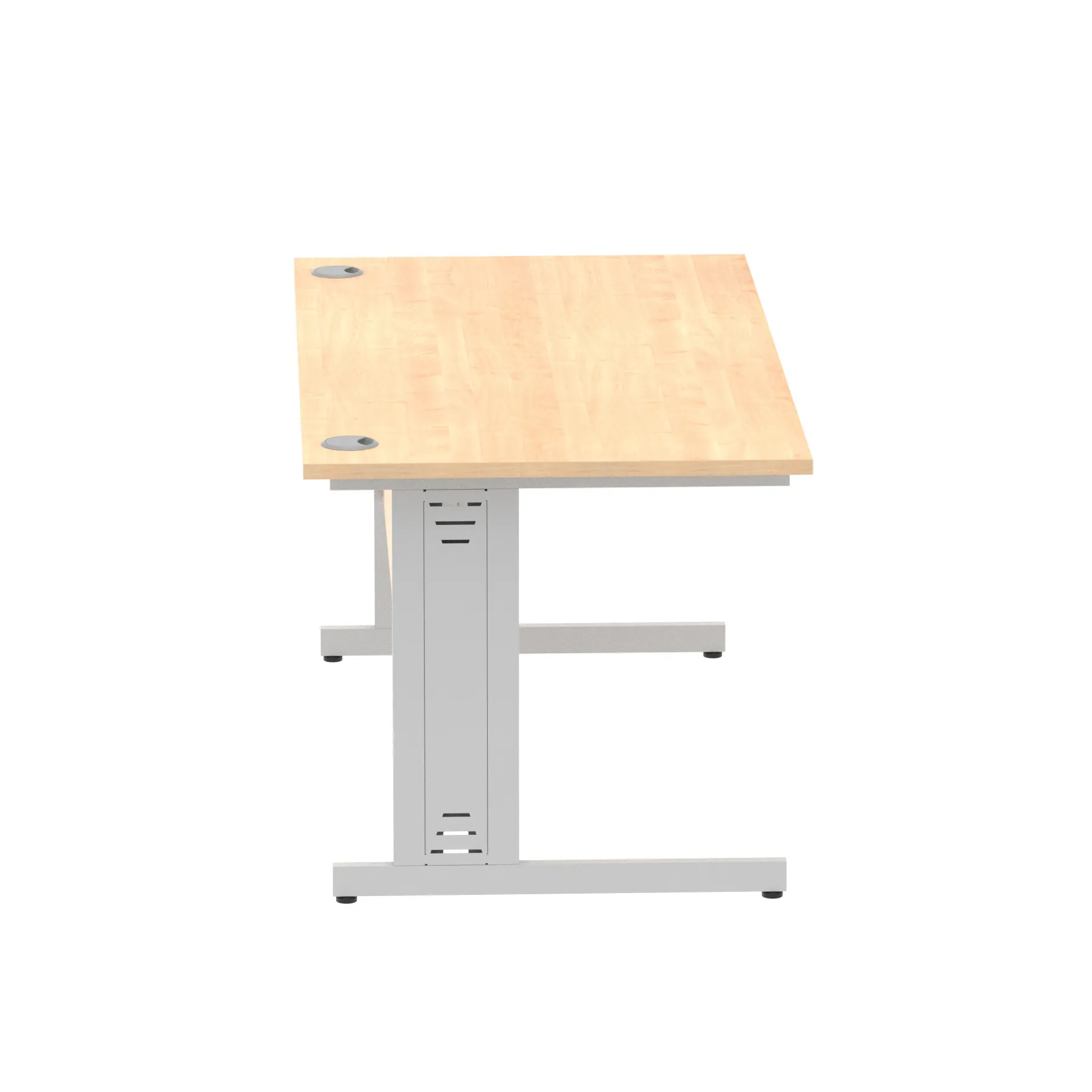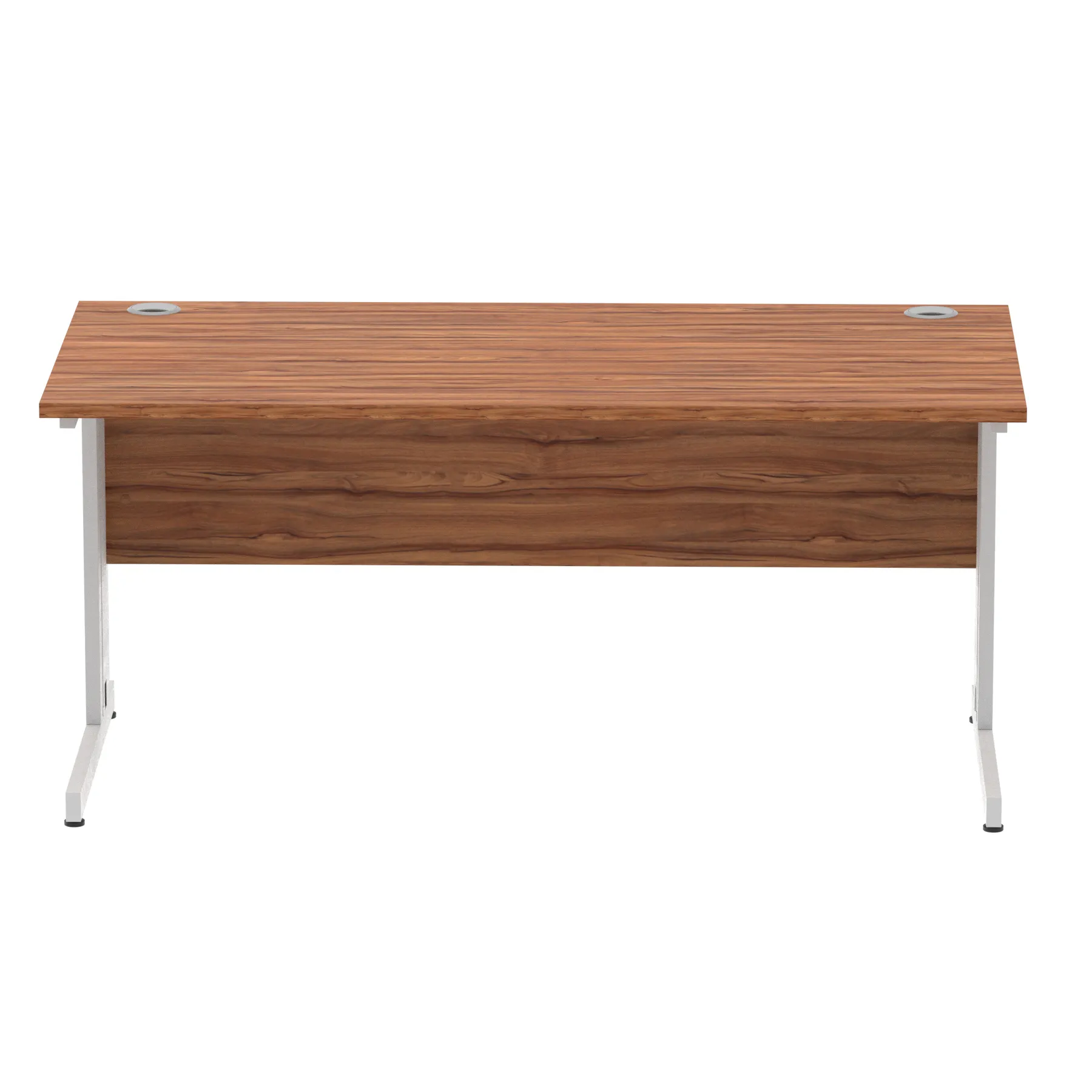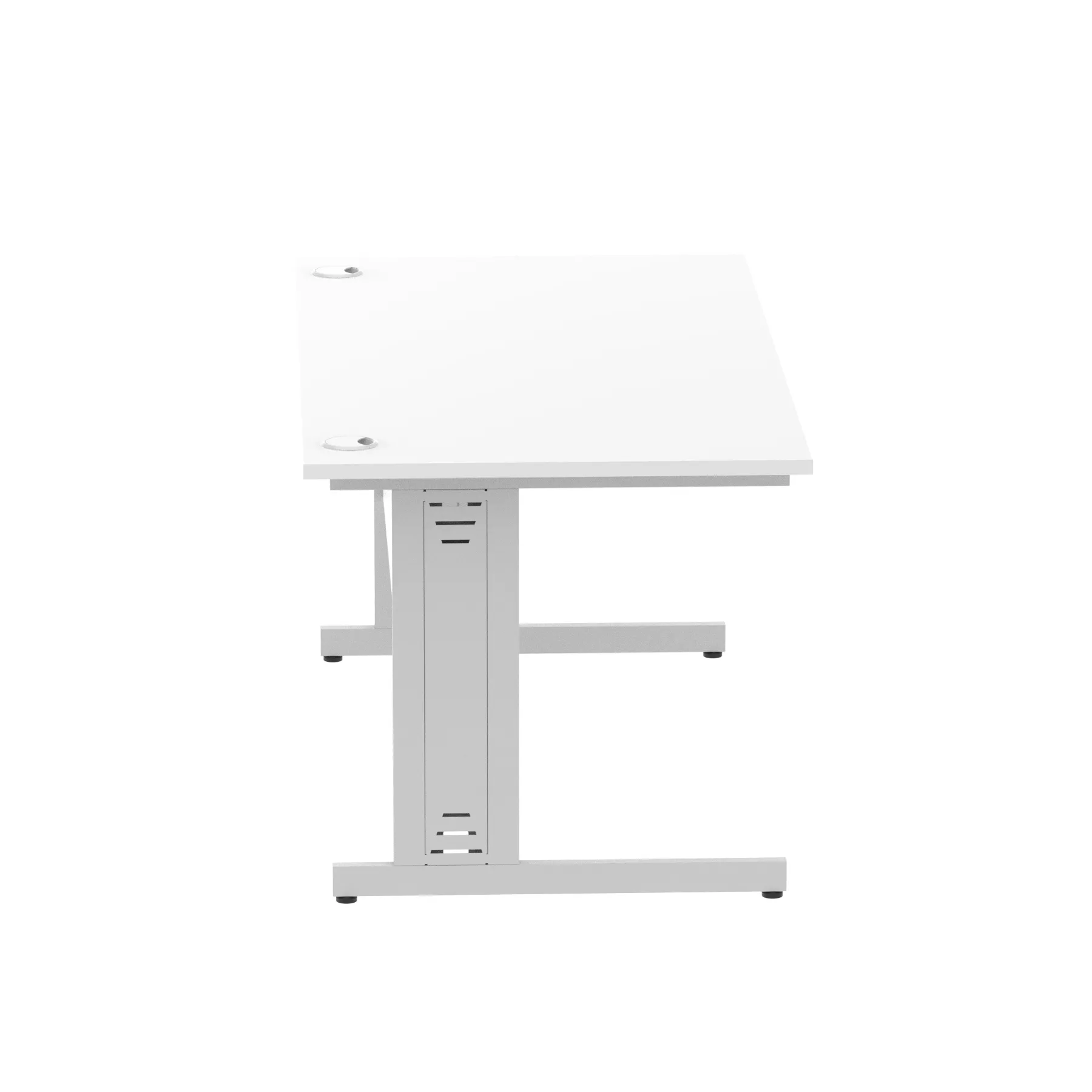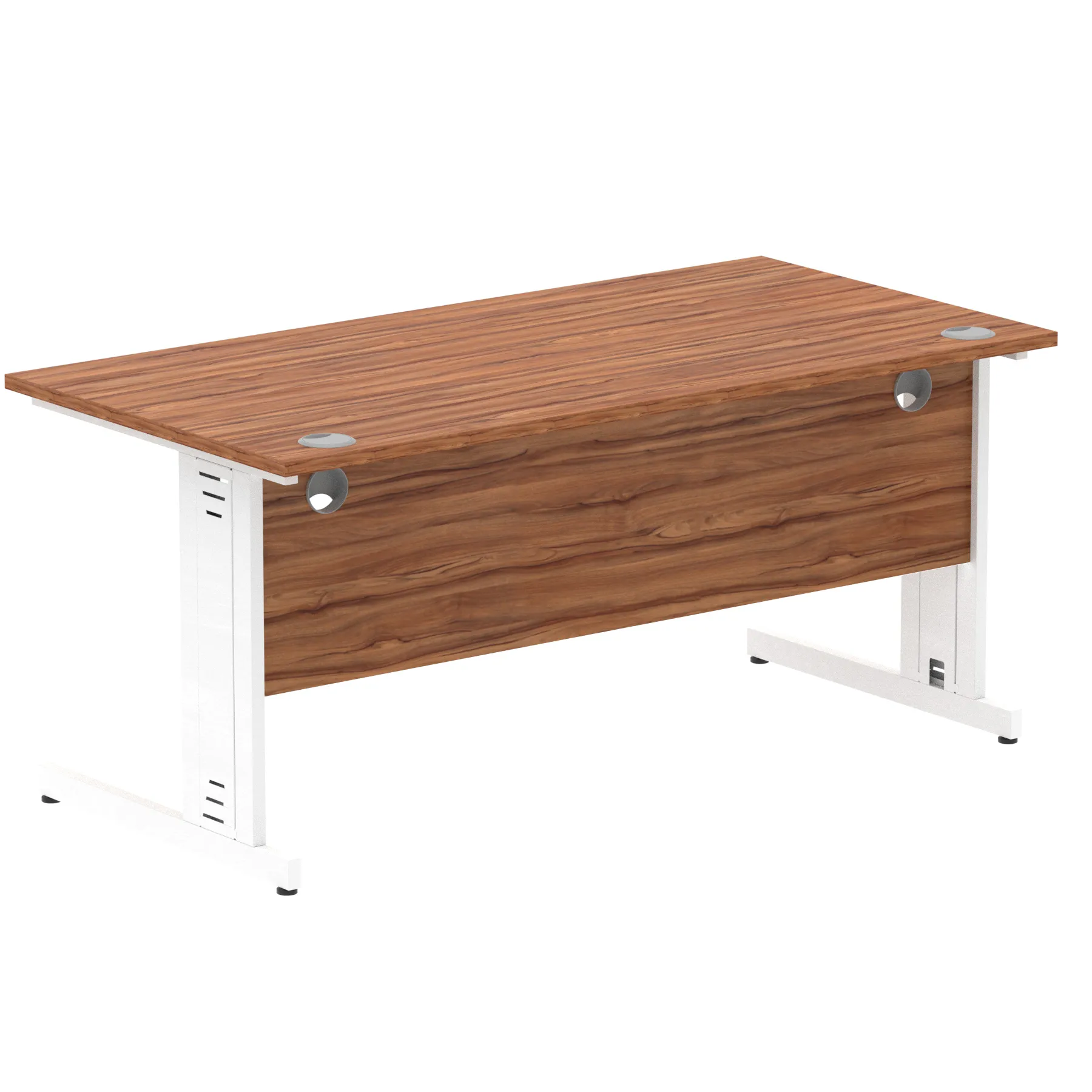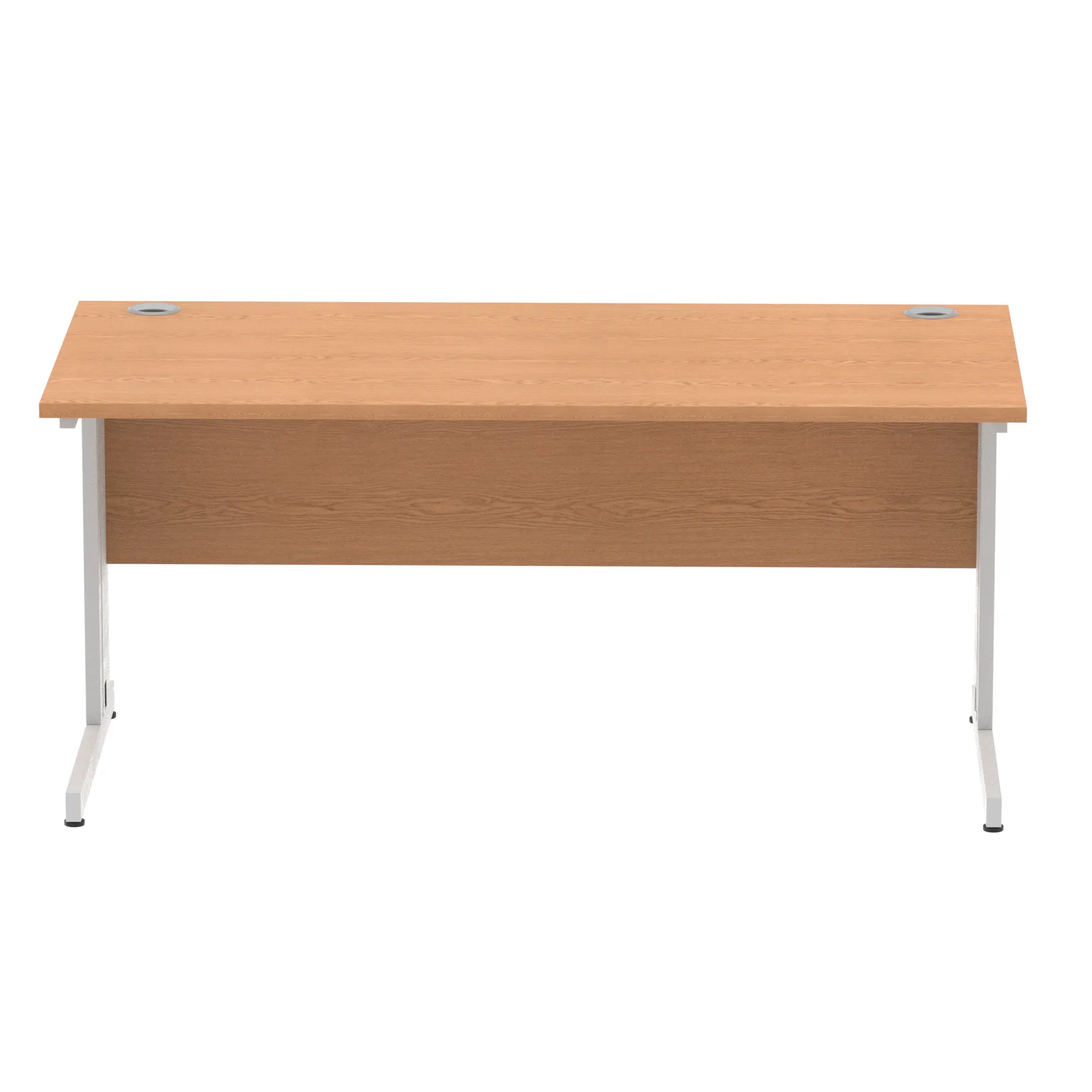Impulse contract desk | 25mm tops | wire management panel | Heat resistant melamine finish | 18mm modesty panel | 2mm protective abs edging | Silver coated double strut legs | 2 cable ports | Height adjustable feet | Steel to steel fixings | 2 modesty panel slots | Deep set modesty panel (5″) allows for compatibility of most screen clamp fittings | Weight Capacity 135Kg