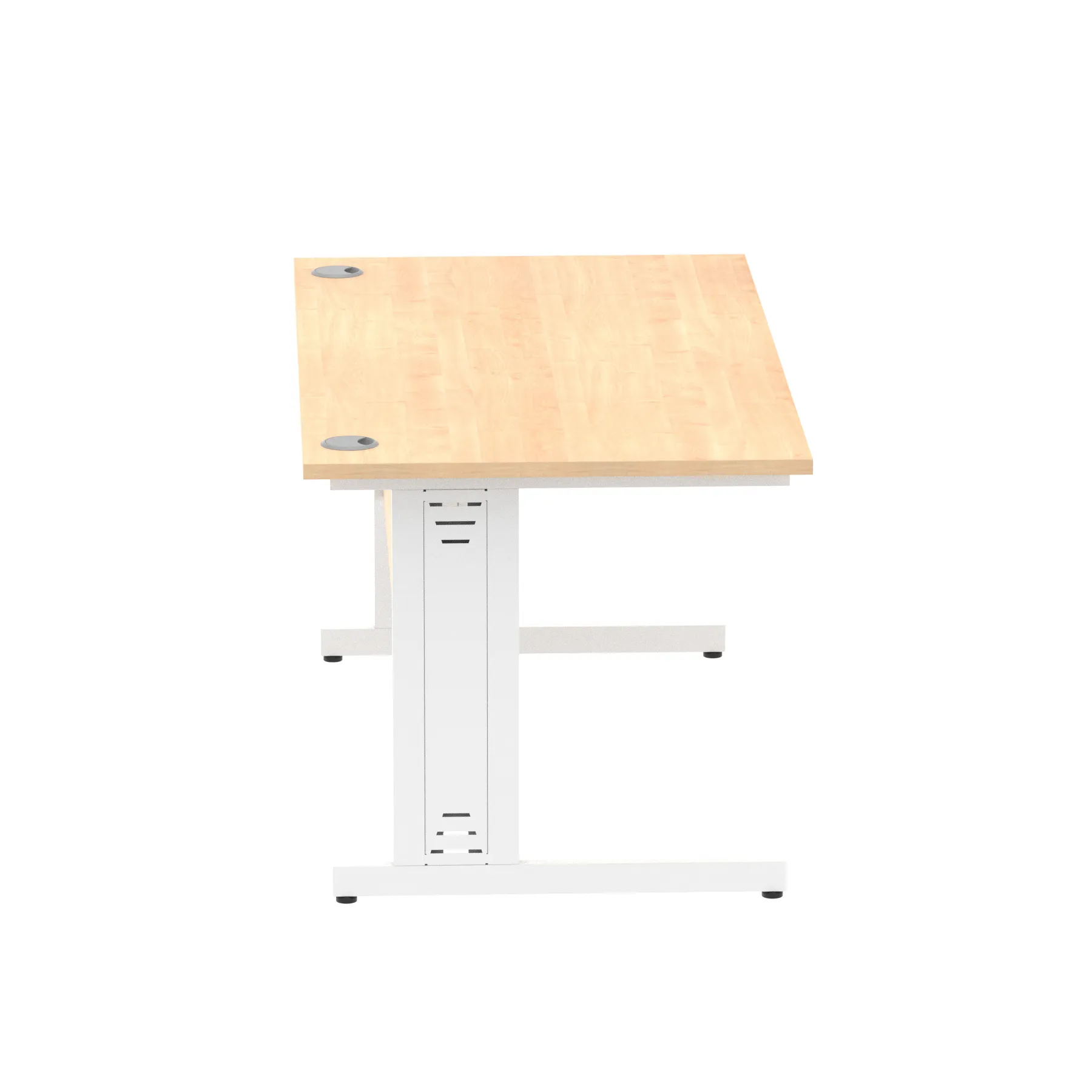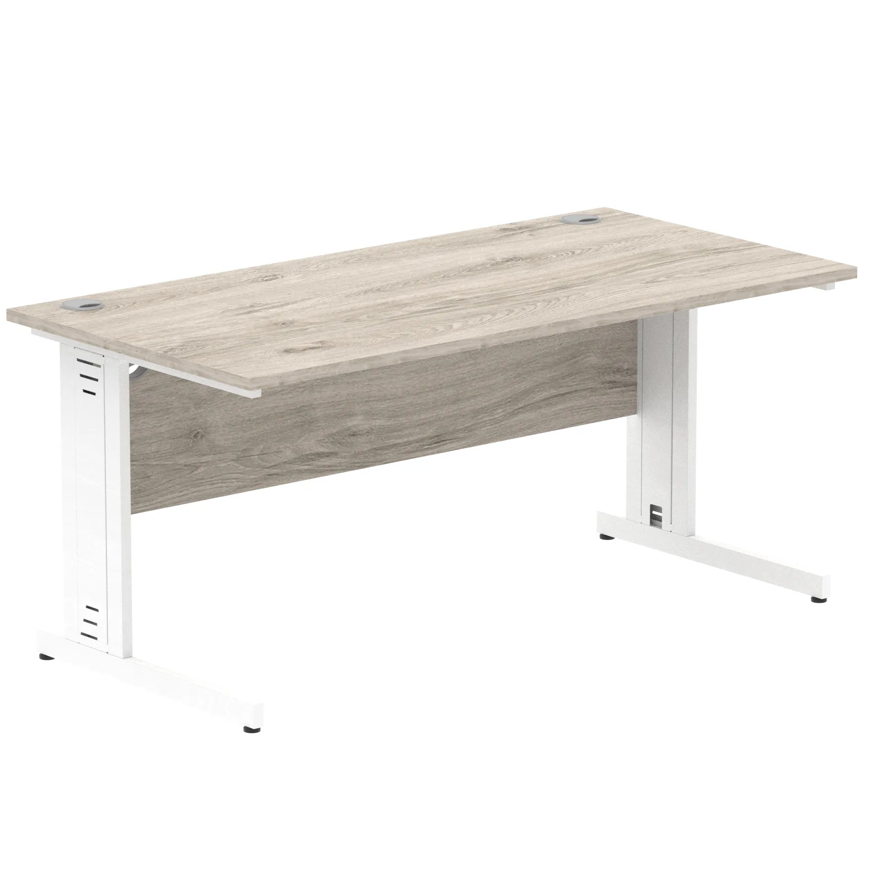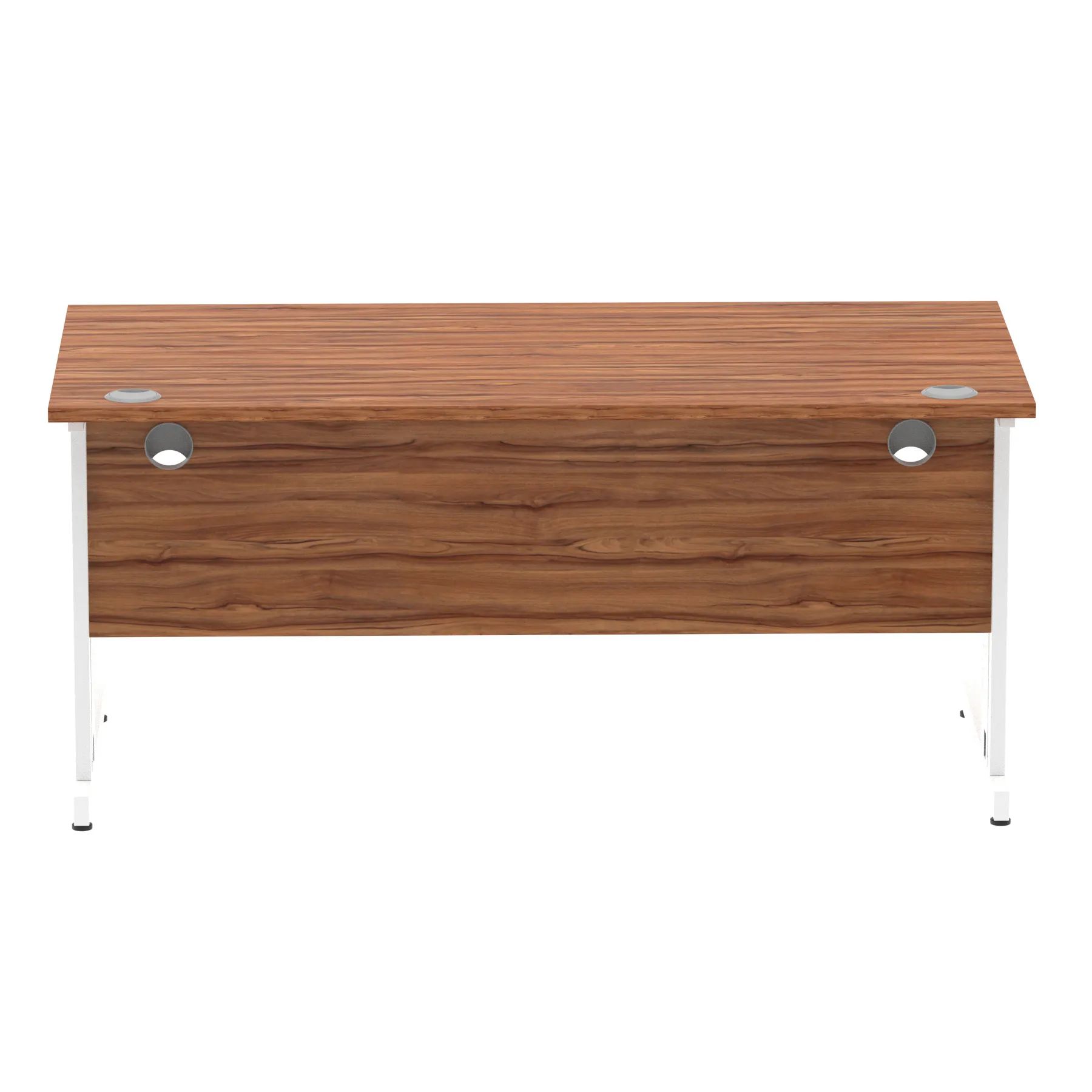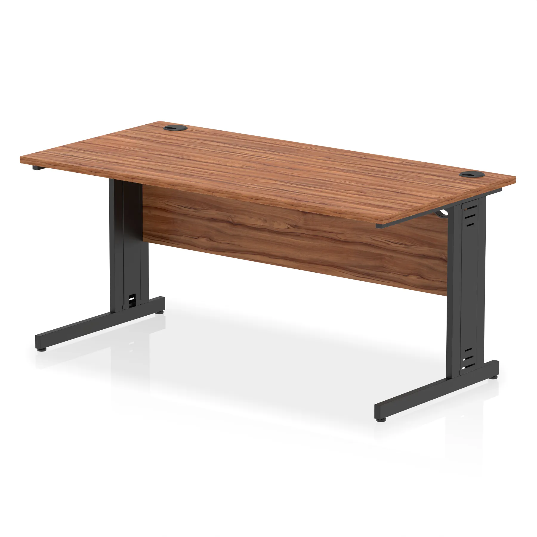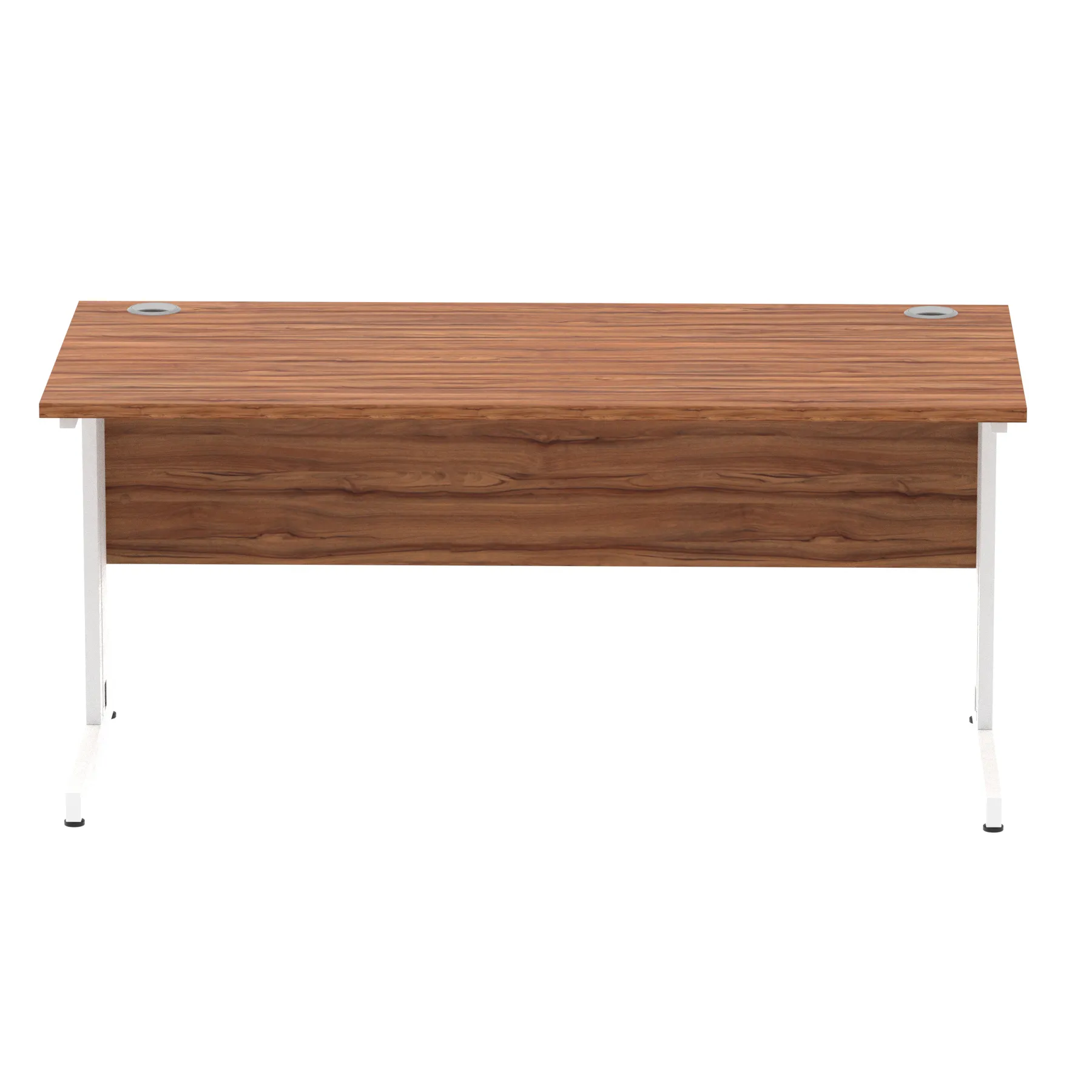 Impulse contract desk | 25mm tops | wire management panel | Heat resistant melamine finish | 18mm modesty panel | 2mm protective abs edging | Silver coated double strut legs | 2 cable ports | Height adjustable feet | Steel to steel fixings | 2 modesty panel slots | Deep set modesty panel (5″) allows for compatibility of most screen clamp fittings | Weight Capacity 135Kg