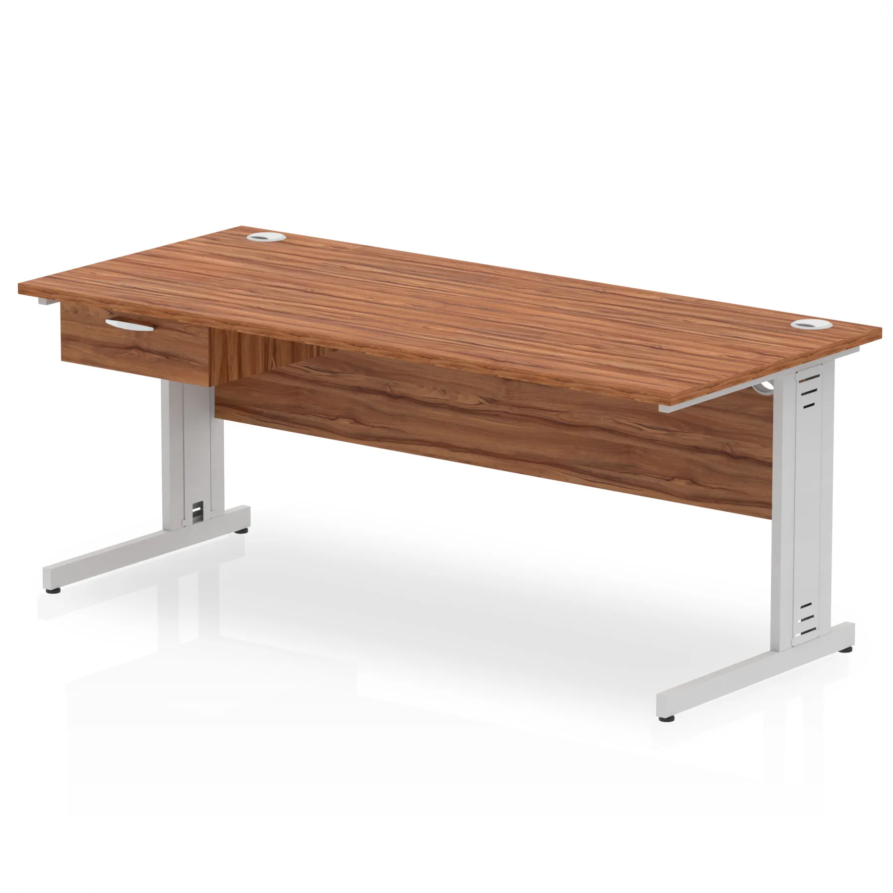 Impulse Cable Managed Straight Desk Silver Frame With Single One Drawer Fixed Pedestal