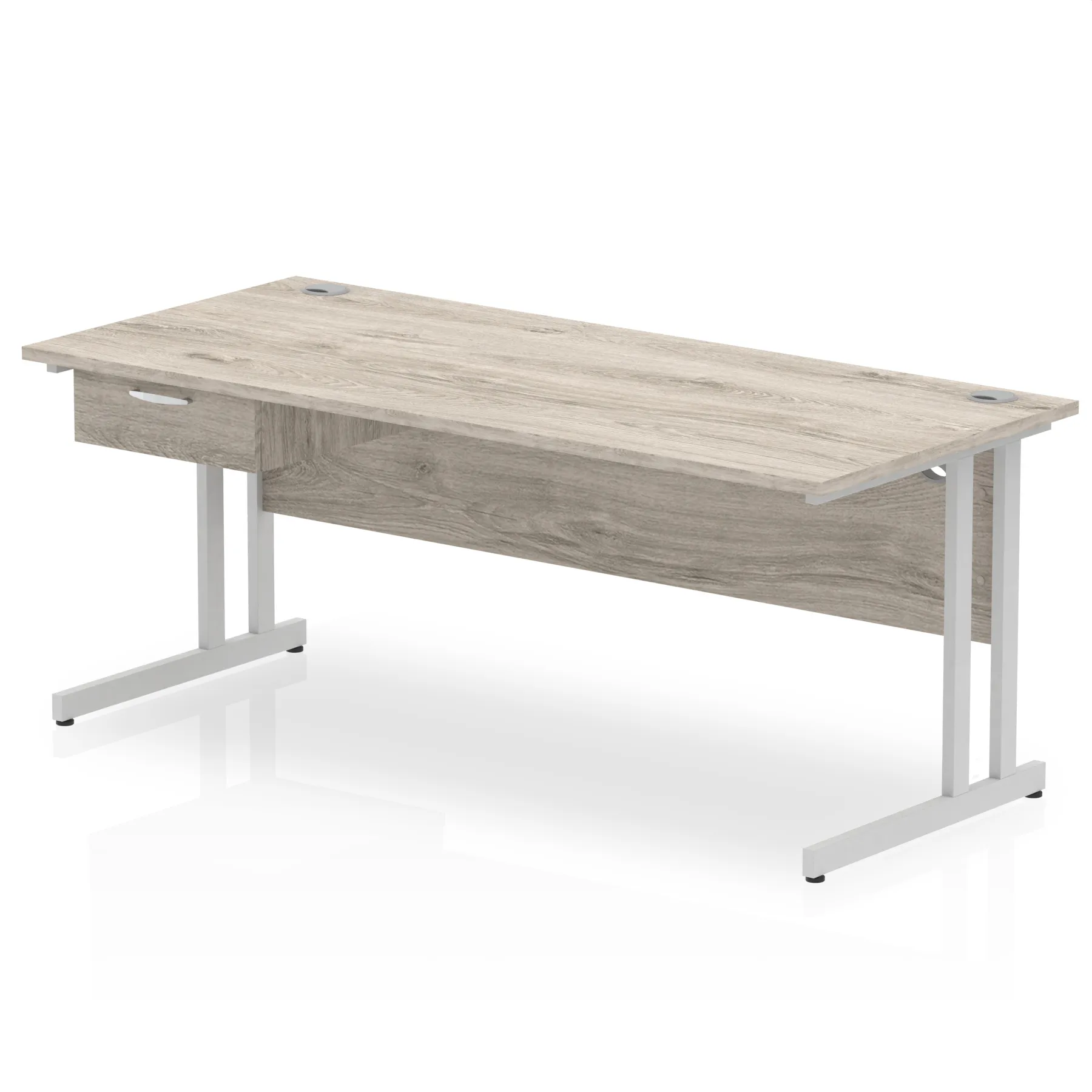 Impulse Cantilever Straight Desk Silver Frame With Single One Drawer Fixed Pedestal